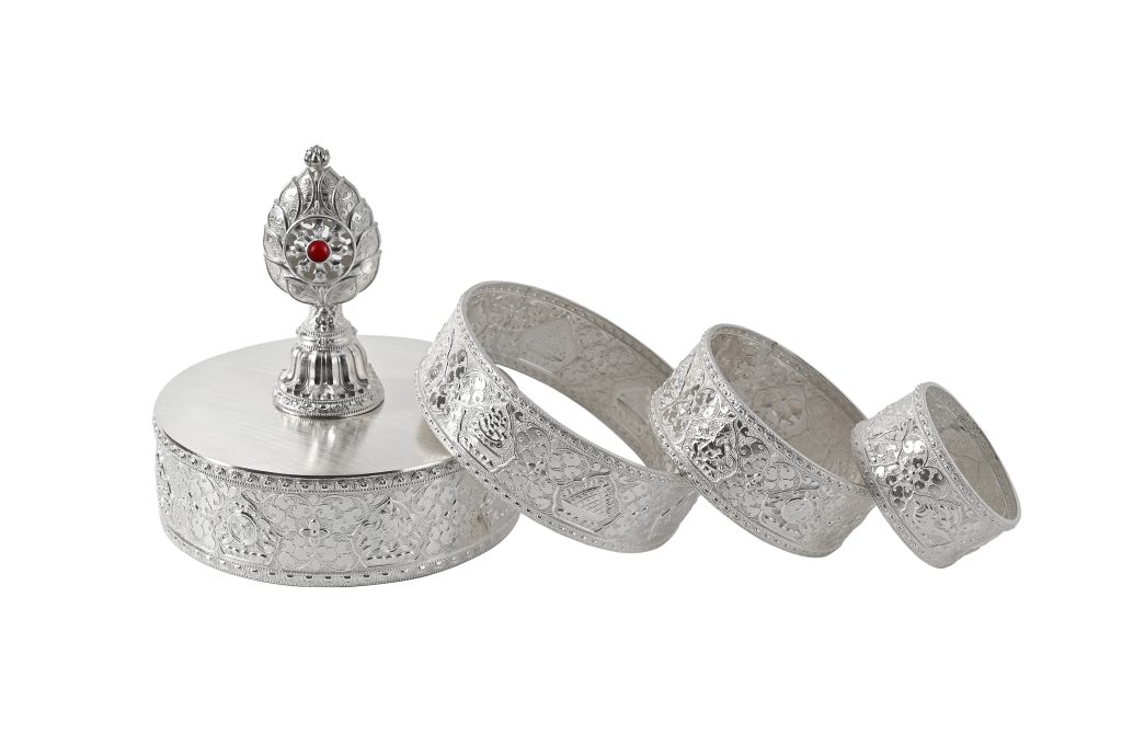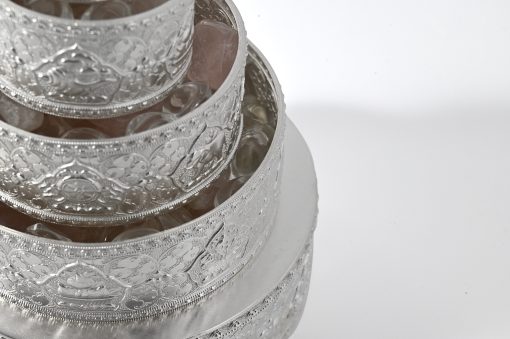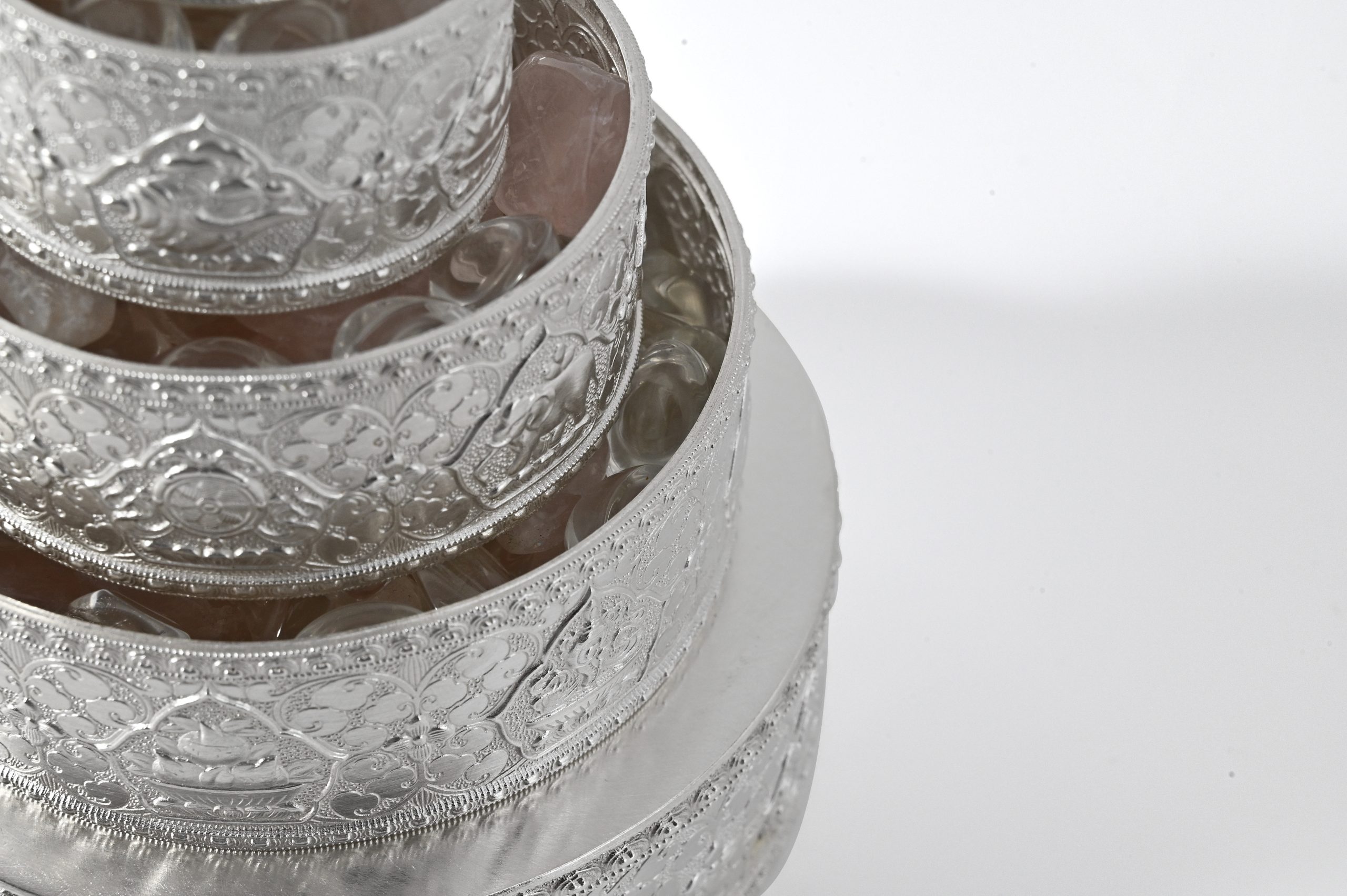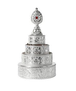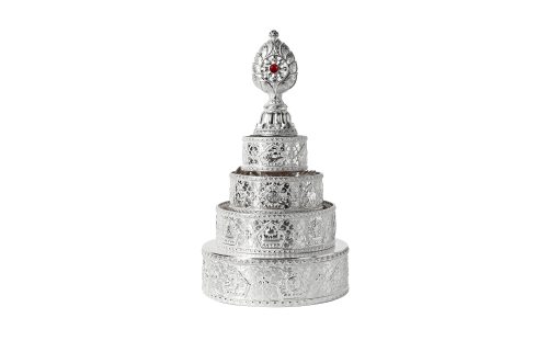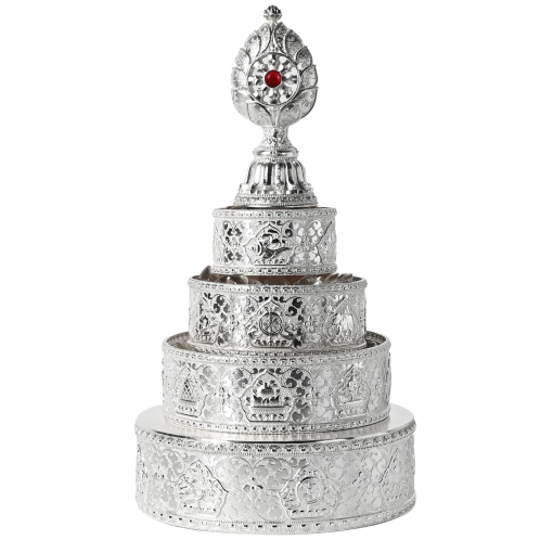 第二層:寶鏡、黃丹、優酪乳、長壽茅草、木瓜、右旋海螺、牛黃、朱砂、芥子。象徵著佛陀的“八正道”。
