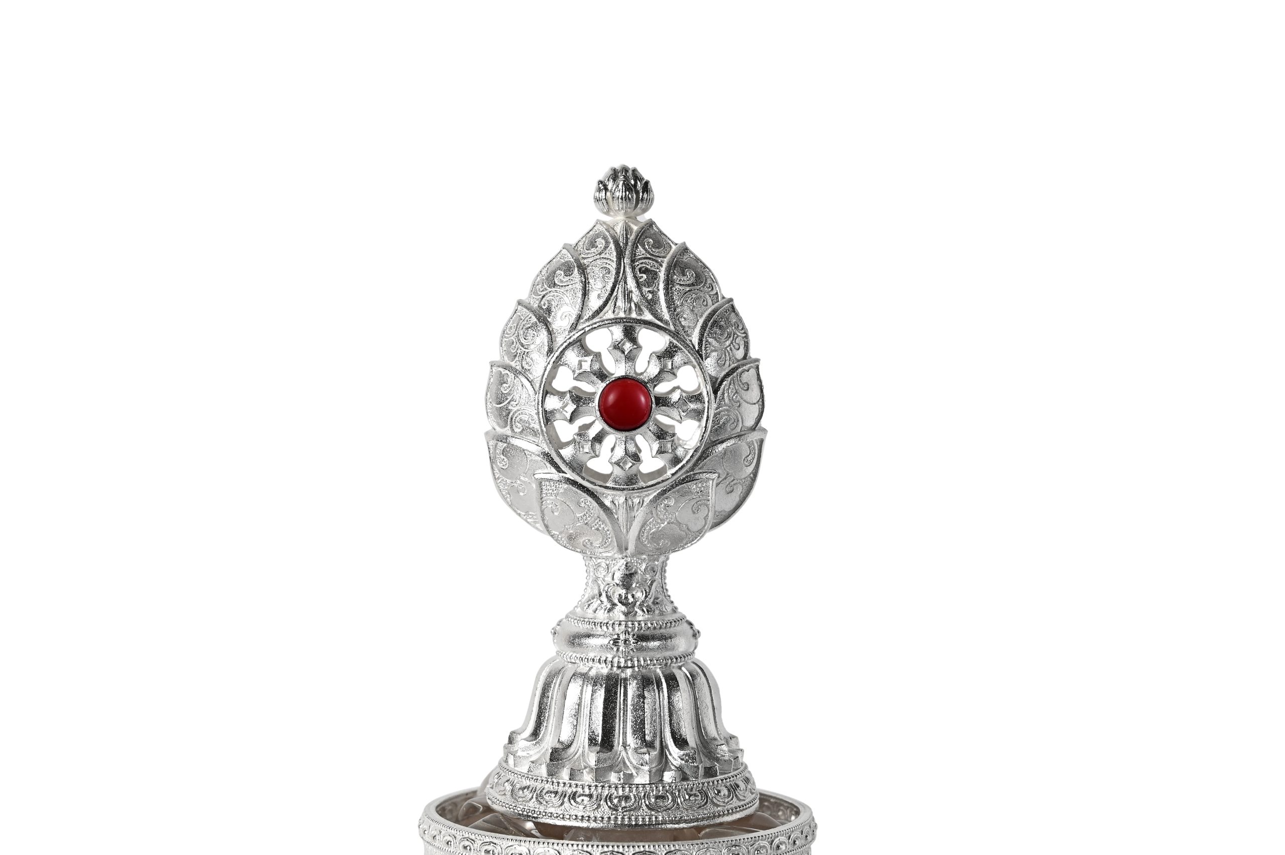 第一層:寶傘、金魚、寶瓶、蓮花、白海螺、吉祥結、勝利幢、金輪,象徵佛教威力的八種物象