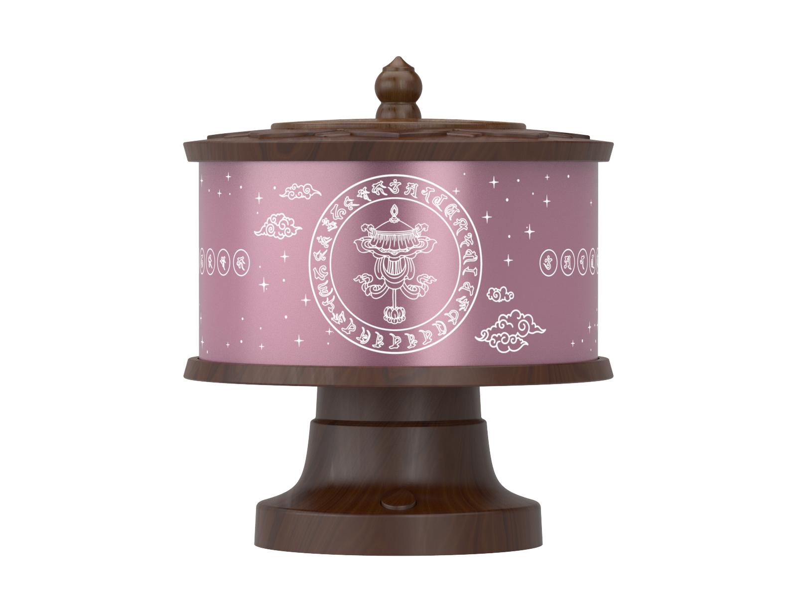外觀菩提樹的設計靈感,木頭材質更能靜心安神。 開啟轉經輪上蓋,內刻有「曼達拉」和「八吉祥」,象徵圓滿的圓內放置科技「微縮經文膠卷」,將經文縮小千百倍後,清晰地呈現在經文膠卷上,再將膠卷存放在自動轉動的轉經輪中。因此,緣起轉經輪轉動一圈時,相當於念誦百萬次經文的功德. 搭配獨創光明燈元素和可自由更換的祈福環,讓光穿透經文,感受經文效力更加強。不管您在休閒、工作或修行時啟動緣起轉經輪,就能感受經文繚繞。